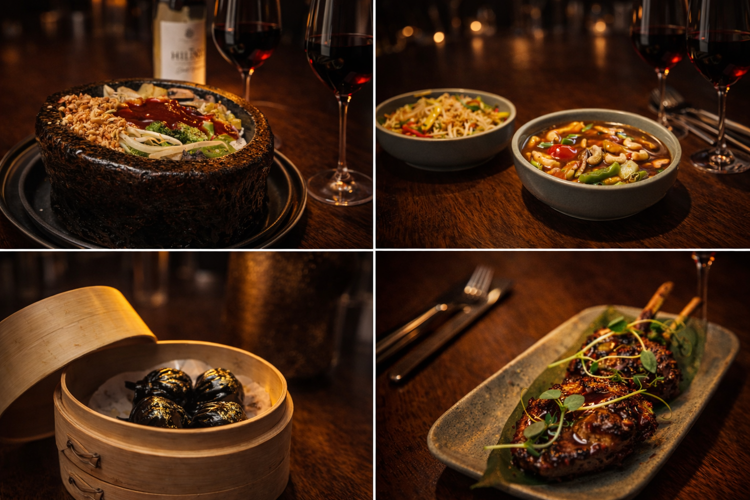 Inside, the restaurant feels welcoming and polished, with warm lighting, thoughtful design touches, and a spacious dining room perfect for group celebrations. The menu is where the magic happens: beautifully presented dishes that blend nostalgia with modern flair. Highlights include decadent charcoal prawn dumplings, sweet and fiery lamb chops, and a deeply satisfying sizzling stone pot of vegetables and gochujang spice. The Kung Pao Chicken and chilli garlic noodles are comforting, bold, and full of umami - ideal for sharing around the table.