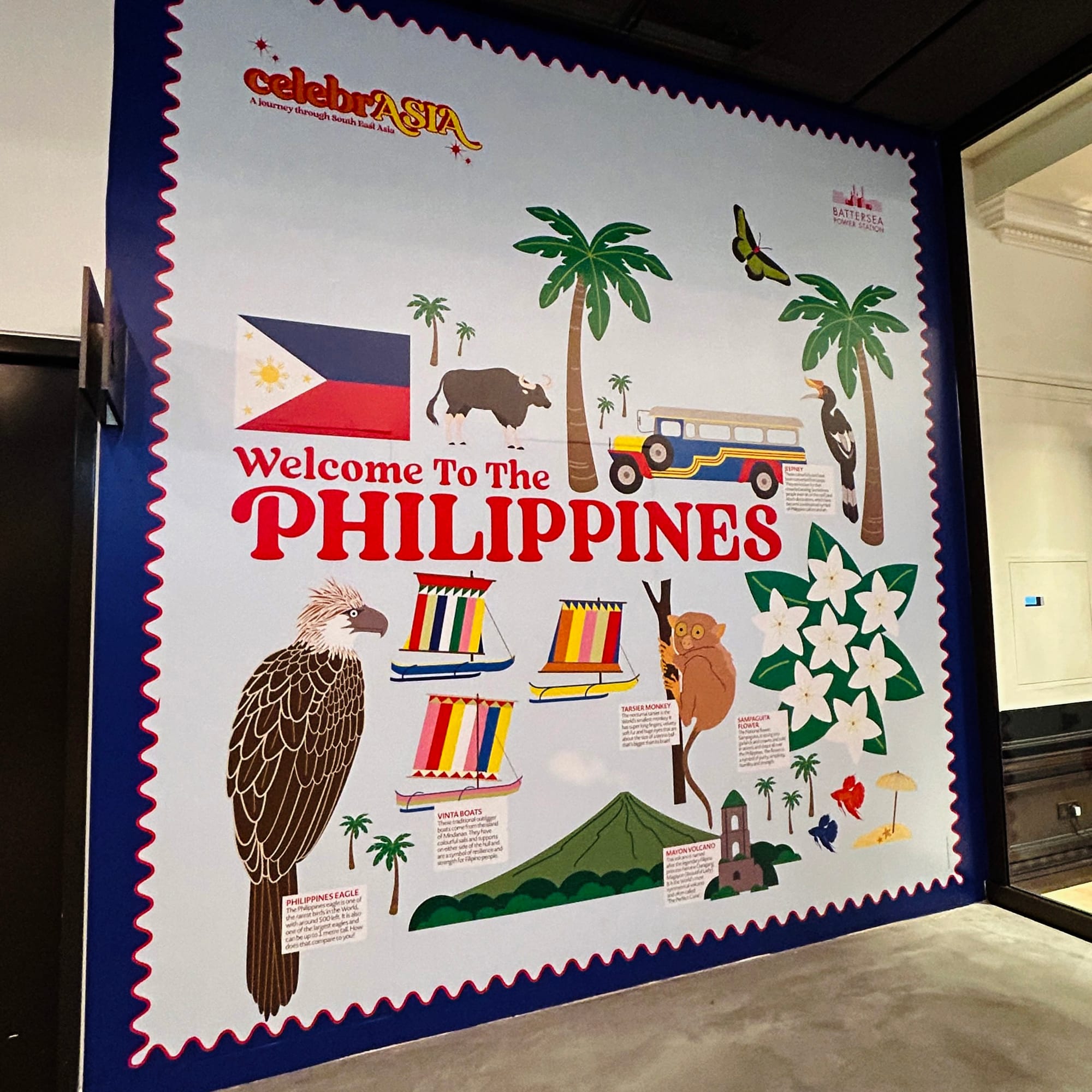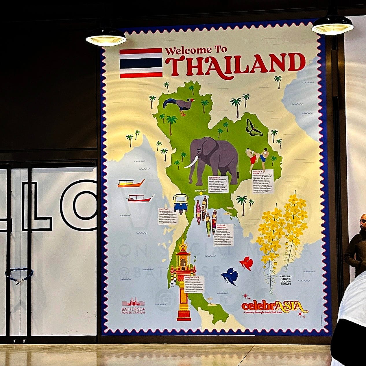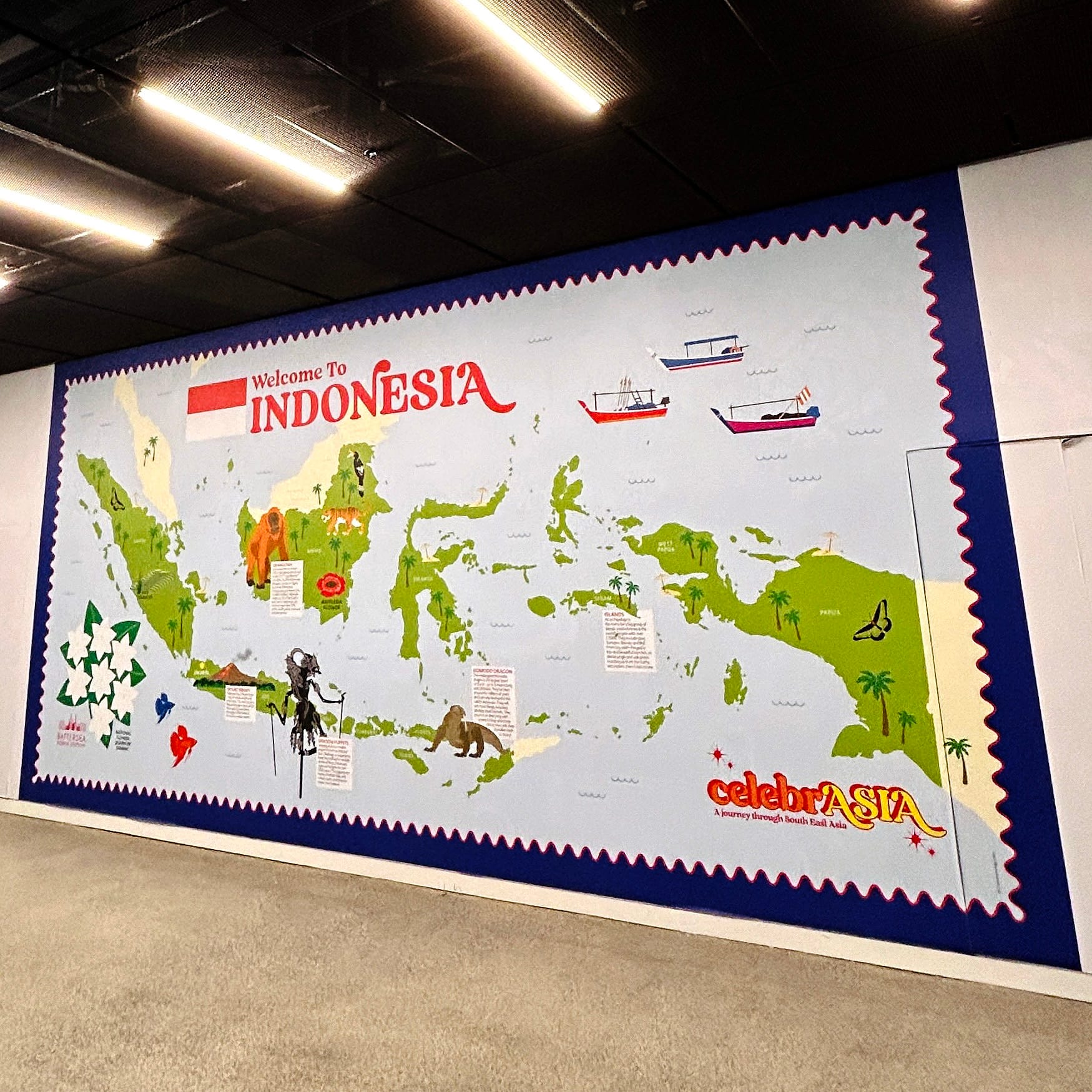 There’s a lovely Ealing connection to this project. Kate McKenzie, founder of the much-missed "Store Collective" in Ealing (now relocated to Margate), organises festivals and was working on celebrASIA, an event created by Battersea Power Station to celebrate the rich culture and heritage of South East Asia. She knew my illustrations of Ealing parks and landmarks well from our previous collaborations, so she had my style in mind when pitching the idea of large format illustrated maps to create a “Grand Tour of South East Asia” inside the Power Station. This is how I ended up being commissioned to produce the final massive artworks for the festival.