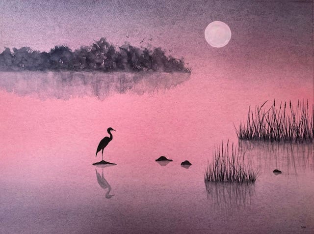 The way I approach a painting depends on the style I’m working in, as I use a few different approaches. For this, I’ll focus on my serene and minimalist landscapes, rather than my more traditional or mixed media work.
