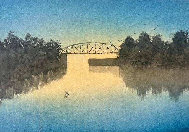 When I begin one of these pieces, I'm less focused on representing a literal place and more interested in evoking a mood - like stillness or calm. Sometimes I already feel that way when I start. Other times, if I’m feeling anxious or overwhelmed, choosing to paint something peaceful helps shift my mindset through the process itself.