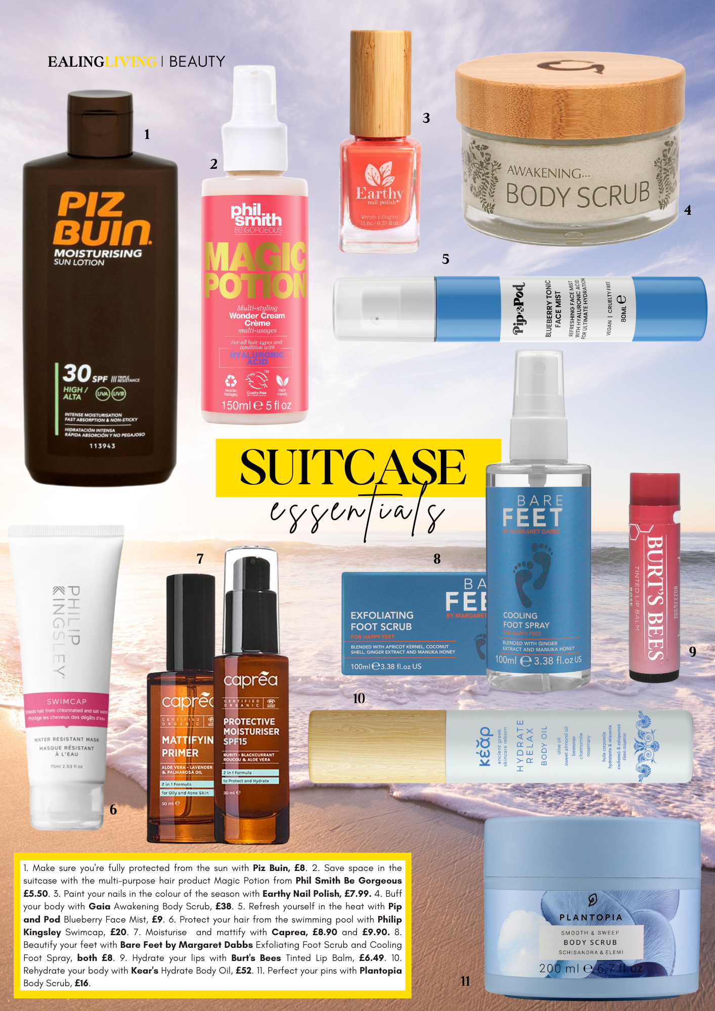 Piz Buin | Phil Smith Be Gorgeous | Earthy Nail Polish | Pip & Pod | Philip Kingsley | Caprea | Bare Feet by Margaret Dabbs | Burt's Bees | Kear | Plantopia